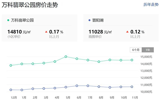 太原市场的表现同样印证了这一规律。 数据显示,晋阳湖片区小洋房万科翡翠公园,在房价动荡的3年间,房源价格不仅高于同片区小区房价而且稳中有升。