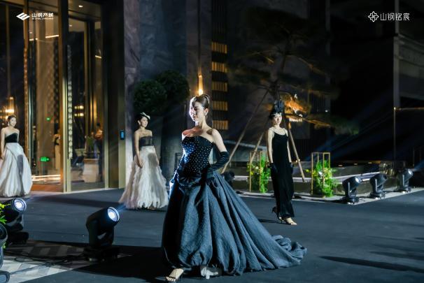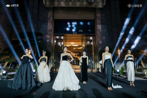 活动从暖场阶段便将“森居”理念渗透到每一处细节。黄昏时分,森系景观区在霞光与定制灯光的交织下,树影婆娑、静谧悠然,提前为嘉宾铺陈出“一步入林”的沉浸感。19时许,一场以黑白为主调的主题服饰秀拉开序幕,模特身着线条利落、面料质感十足的服饰登场,其传递的“去繁就简”美学主张,与后续美学馆内“少修饰、重自然”的空间设计形成深度呼应,暗合项目对“从容森居美学”的追求。