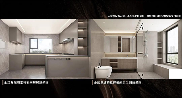 比如卫生间,项目创新「超级浴室柜体系」,镜柜功能高度集成:除雾美妆灯、多功能收纳架一应俱全。并在餐厨空间,系统化扩容家政收纳空间。以智慧设计,同时实现收纳力与美观度的双重飞跃。
