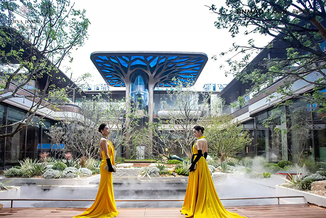 ·约236朵手工海棠花瓣穹顶,精工玻璃石材,延续金茂棠系基因;