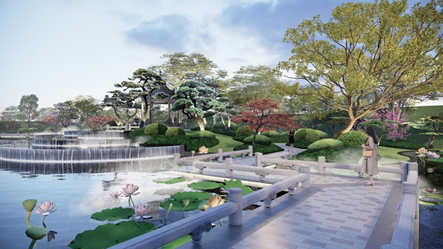 此外,项目的园林设计细节也融入了宋式美学元素,依照宋代《营造法式规制》,打造飞檐斗拱等五重风雅宋工艺工法。汲取《瑞鹤图》、《千里江山图》、《西园雅集》美学元素与周边自然环境搭配,让园林生活美学更具有灵动性与文化性。