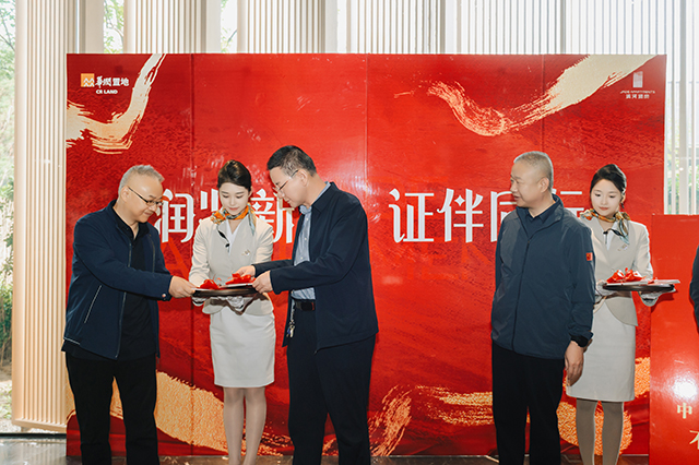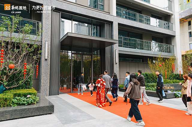交付首日的园区处处洋溢着温情与尊崇,每一处细节都藏着对业主的用心。步入社区,澄澈的水景旁传来悠扬的古筝旋律,丝竹之音与粼粼波光相映。单元楼前早已铺就崭新地毯,两侧花艺路引芬芳雅致,为业主铺就步步尊崇的归家之路。