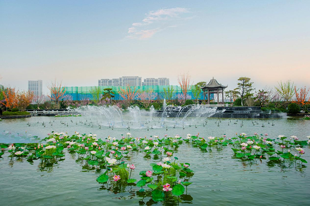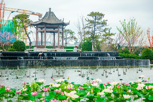 如果说工程提速彰显的是央企硬实力,那么实景园林的开放则流露着央企铁建的软实力。作为综改区首个实景湖畔宋园,花语雅颂以 "一轴一湖三进五园" 的布局,打破了区域 "重功能、轻生态" 的传统格局,让千年宋韵在当代社区落地生根。