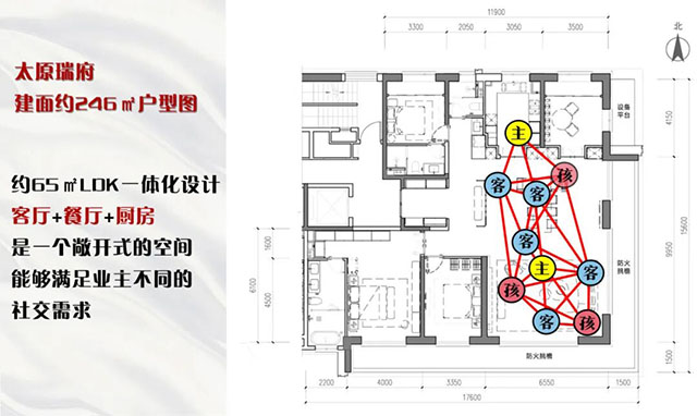 同样的面积,交换了空间模块、主次关系、远近位置后,它会提供不一样的“使用感”。这就变成了一个创新的246㎡户型。