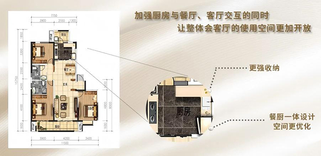 超前的LDK空间系统,让餐客厨有了更多的交互,可以完整的分出5大功能模块,可以很好的满足烹饪,用餐,会客,娱乐,休憩的多样化大家庭需求,组织百变的生活方案。